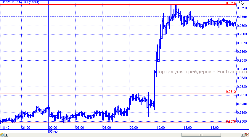 В четверг пара день начала в пределах диапазона, ограниченного уровнями 0,9578 – 0,9612. Но впоследствии развила восходящее движение. Цены преодолели сопротивление на уровне 0,9640 и 0,9670. Попытка закрепиться выше отметки 0,9700 успехом не увенчалась и к завершению торговых суток пара откатилась к уровню 0,9690.
