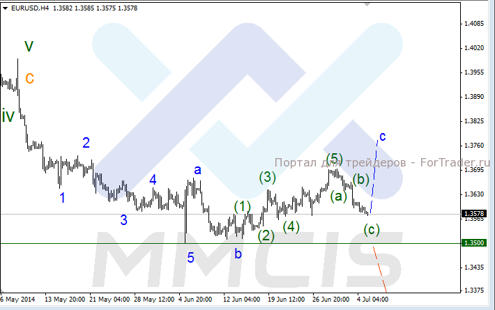 На минувшей неделе евро дешевел против доллара, и пара снизилась в район поддержки 1.3600. Но коррекция в волне «с» малого порядка завершается, поэтому можно ожидать возобновления роста. По мнению аналитиков, ближайшая поддержка 1.3560 выступает для покупателей основным уровнем, от которого может начаться рост.
