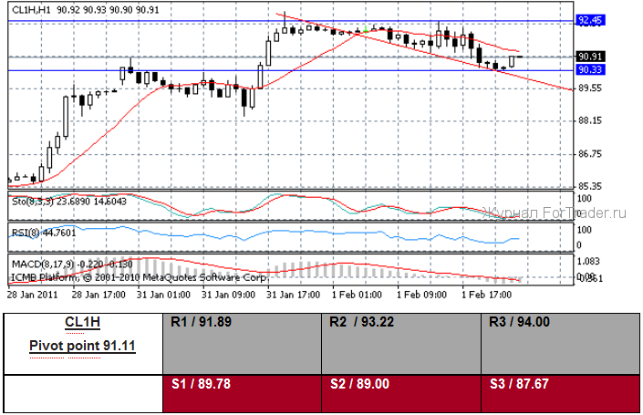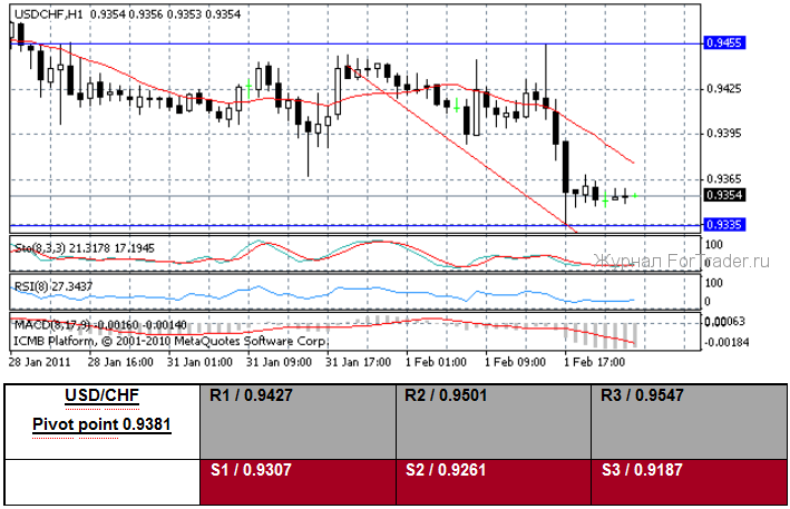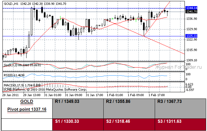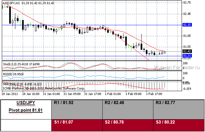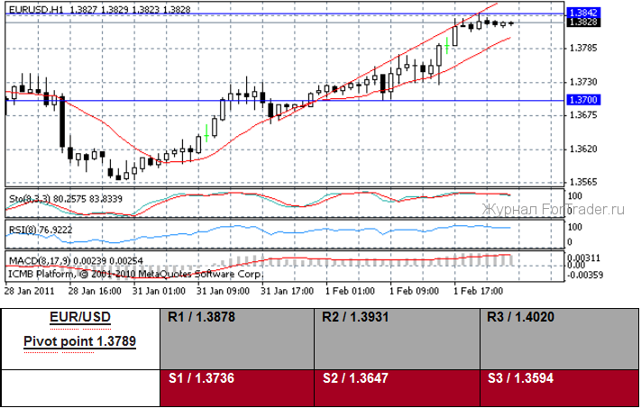Много данных вчера было опубликовано в Великобритании. Во-первых, январские цены на недвижимость от агентства Nationwide показали уменьшение на 0.1 %(м/м) и на 1.1 % (y/y). Во-вторых, январский индекс PMI в сфере обрабатывающей промышленности поднялся к 62.0 от пересмотренного предшествующего чтения 58.7. В-третьих, потребительский кредит в декабре составил ?200 млн. В-четвертых, ссуды на покупку жилья в декабре составили ?300 млн. Пятое, количество одобренных заявок на ипотеку в декабре показали значение — 42 600. Шестое, декабрьская денежная масса M4 упала на 1.3 % (м/м) и на 1.5 % (y/y). NIESR сообщил, что Государственный банк Англии поднимет свою ключевую процентную ставку три раза в этом году и видит эталонную ставку 1.25 % к концу 2011 года. Член комитета Денежно-кредитной политики Государственного банка Англии Weale на этой неделе доверительно сообщил — «Была некоторая слабость, отмечающая состояние длительного нового спада деловой активности, инфляционные давления, вероятно, исчезнут без увеличения банковской ставки. Если рост возобновится в ближайшее время, мои опасения по поводу инфляционного ожидания будут оставаться. Главный риск состоит в том, что, чем дольше инфляция остается выше цели и больше превышает свою цель, тем более отрицательное воздействие она оказывает на результат снижения”. Примечательно, что Weale и коллега MPC Andrew Sentance оба голосовали, чтобы поднять главную Банковскую ставку на 25 пунктов в этом месяце, в составе меньшинства.