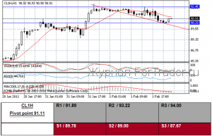 (Bloomberg) — Сырая нефть в Нью-Йорке упала от двухлетнего максимума, поскольку беспокойство по поводу того, что поставки через Суэцкий канал могут быть нарушены волнением в Египте, ослабилось. Сырье марки Brent торгуется больше чем 100$ за баррель второй день. Фьючерсы потеряли 1.5 процента после того, как официальные лица канала сказали, что трафик, как обычно пропускает более чем 2.2 миллионов баррелей нефти в день. Генеральный секретарь ОПЕК Abdalla el- Badri вчера сказал, что группа производителей увеличила бы выход, если бы волнение прервало транспортировку. “Волнение в Египте не оказало влияния на нефтяные движения, и ОПЕК сказала, что они восполнили бы любой сбой, ” — сказал Том Бенц, брокер с BNP Paribas Commodity Futures в Нью-Йорке. “Мы сплотились сильно за прошлые два дня и теперь берем паузу. Премия немного сжимается ”. Сырая нефть для поставки в марте упала на 1,42$, чтобы рассчитаться по 90,77$ за баррель на Нью-Йоркской товарной бирже. Фьючерсы вчера закрылись на 92,19$, самая высокая отметка с 3 октября 2008. Фьючерсы повысились на 22 процента относительно года назад.