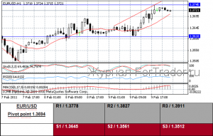 (Reuters) — Доллар США резко упал против евро в среду на фоне низкой доходности казначейских облигаций, продаваемых вслед за комментариями председателя Федеральной Резервной системы Бена Бернанке, что программа покупки облигаций продолжится. Доллар упал на трехдневный нижний уровень против евро, но был устойчив против Японской иены, поскольку американская доходность облигаций понизилась после того, как аукцион $24 миллиардов 10-летних казначейских облигаций нарисовал высокий спрос. Евро вырос к 1,3745$ на торговой платформе EBS, преодолевая сопротивление 1,3740$, на уровне 61.8% Fibonacci падения с ноября до января. От последней сделки 1,3722$ выше на 0.7 процента. Следующая верхняя цель приблизительно 1,3765$, лоу евро 2 февраля. «Комментарии Бернанке были более мирными, чем ожидалось, поскольку некоторые думали, что он придаст больше значения недавним усовершенствованиям, замеченным на рынке труда, но он не сделал этого, указывая, что не торопится поднимать ставки, » — сказал Alan Ruskin, стратег на рынке иностранной валюты в Deutsche Bank в Нью-Йорке. «Евро, вероятно, останется в границах рейнджа, пока нет ясности на EFSF (чрезвычайный фонд срочной помощи), возможно, когда европейские лидеры встретятся в следующем месяце, » — сказал Ruskin. «Решит ли Европейский центральный банк поднять ставки раньше, чем американский Федеральный Резерв, также большой вопрос».