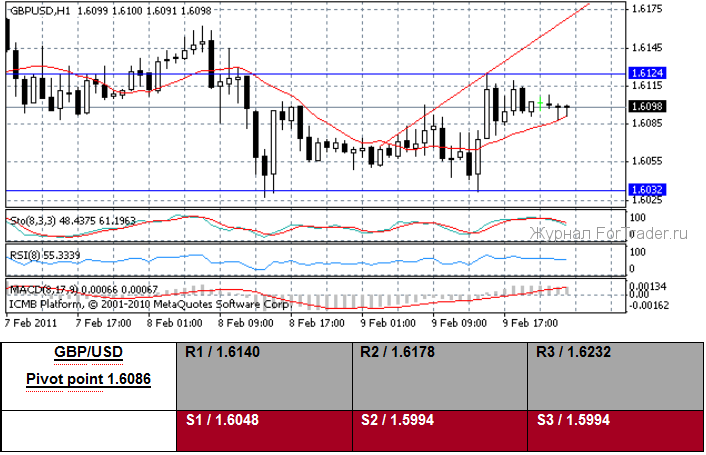 В Германии сальдо торгового баланса в декабре, 11.9 млрд евро, справедливо соответствовало ожиданиям. Экспорт повысился меньше, чем ожидалось на 0.5%, но импорт упал на 2.3 %, возможно, из-за возврата плохой погоды в конце прошлого года. Торговый дефицит Великобритании был примечателен тем, что достиг рекордной цифры в 2010 году. Всего торговый дефицит увеличился до -9.247 млрд. фунтов стерлингов против -8.466 млрд. фунтов в ноябре. Значительное увеличение количества иностранных авиационных заказов в конце прошлого года, до увеличения в январе налога с продаж, оказало влияние на дефицит больше, чем обычно, однако, нет никаких сомнений в том, что экономическое перебалансирование Великобритании к экспорту должно все же сдерживаться. Даже со снижением стерлинга в последние годы, рост цен на сырьевые товары сказывался на дефиците. Это, вероятно, обеспокоит Государственный банк Англии, который встречается завтра. Там растет давление на Банк, чтобы поднять процентные ставки вследствие повышенных уровней инфляции, и в протоколе январского заседания Банка MPC отмечалось воздействие импортируемой инфляции. Эти данные только укрепляют проблему британского импортирования сильнее инфляции. Однако существует риск, что ухудшение торгового баланса Великобритании могло заставить пересмотреть ВВП Q4 вниз от начального чтения на -0.5 процента.