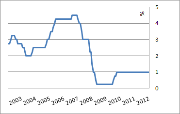 Канадский доллар укрепляется второй день подряд против доллара США, приближаясь к нижней границе узкого недельного торгового диапазона 0.9900-0.9950. Вчера завершилось заседание Банка Канады. В полном соответствии с прогнозами рынка центральный банк оставил неизменным уровень процентной ставки – 1% (см. График). Кроме того, несмотря на довольно слабые результаты в третьем квартале, центральный банк ожидает подъема экономической активности в 2013 году, в связи с чем в дальнейшем может потребоваться «некоторое ужесточение денежно-кредитной политики», сообщалось в заявлении банка. Подобные оптимистичные нотки прослеживались и по итогам предыдущего заседания в октябре, оказывая поддержку национальной валюте.
