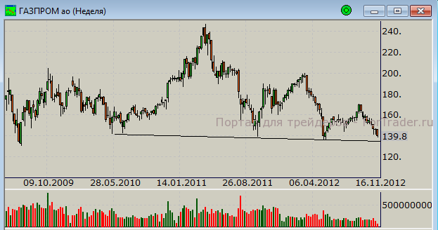 Акции газового гиганта вчера были одними из лидеров снижения, закрепившись ниже предыдущего минимума. В настоящее время цены приближаются к существенной поддержке, которую образуют годовой минимум вблизи отметки 136 рублей, а также диагональный уровень у отметки 134 рубля. Таким образом, есть основания ожидать остановки снижения цен в диапазоне 134-136 рублей с последующей консолидацией вблизи этих значений.