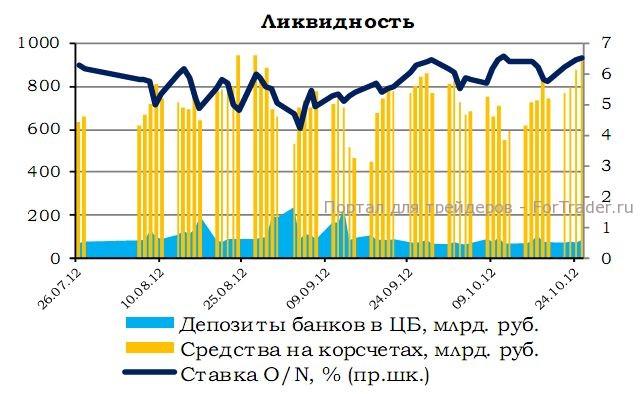 Средства на корсчетах банков сократились на 159,7 млрд. руб., депозиты в ЦБ увеличились на 12,4 млрд. руб. Ставка овернайт выросла на 19,00 б.п. и составляет 6,5400 п.п.