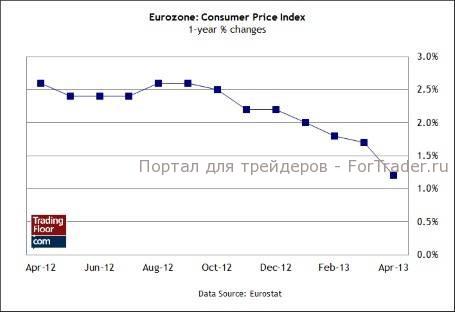 Опубликованная вчера предварительная оценка роста ВВП еврозоны в первом квартале, которая не оправдала ожидания участников рынка, стала официальным подтверждением того, о чем уже давно говорили: в Европе продолжается рецессия. Это доказательство общего экономического спада в первом квартале года повышает ставки в отношении сегодняшнего окончательного отчета об инфляции за апрель. Участники рынка будут в нем искать признаки того, что темпы дезинфляции на самом деле выше, чем изначально предполагалось.