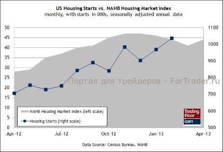 Согласно результатам вчерашнего отчета NAHB об индексе жилищного рынка, уровень доверия среди застройщиков жилья немного повысился. Это дает основания надеяться на то, что в сегодняшнем отчете за апрель сохранятся устойчивые темпы роста закладок под строительство новых домов. После публикации индекса жилищного рынка директор по макроэкономическим стратегиям в Saxo Bank Мэс Кофод написал: «Восстановление жилищного рынка в США продолжается».
