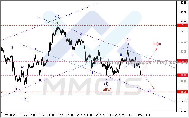 Поэтому в качестве основного сценария можно ожидать завершения формирования коррекционной волны «b» в районе текущих минимумов, и начала укрепления пары в район 30-й фигуры в виде волны «с». В качестве альтернативного сценария рассматривается вариант, при котором пара продолжит снижение к отметке 1.2850 в рамках усложненной структуры волны «Alt: b».