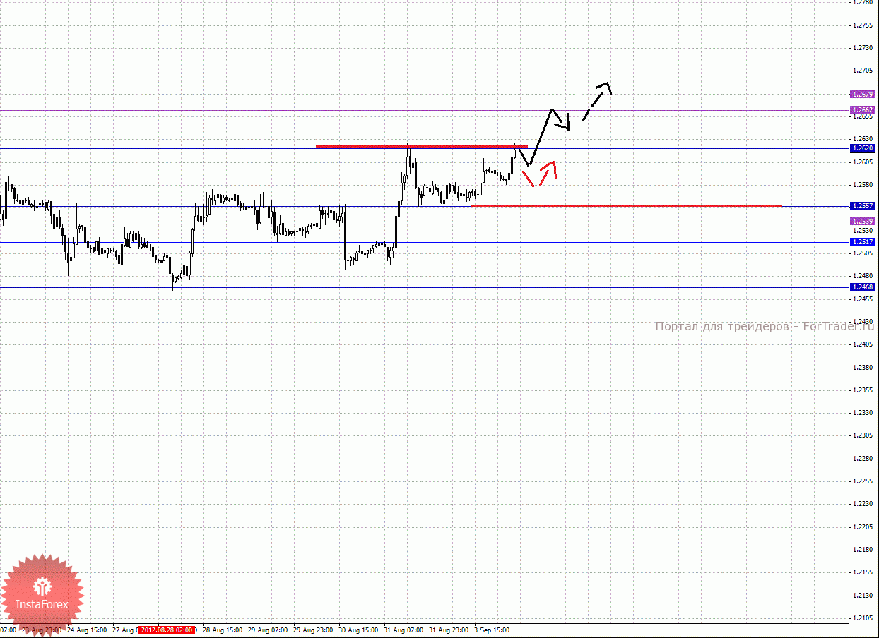 По паре Евро/Доллар важными уровнями являются: 1.2679, 1.2662, 1.2620, 1.2557, 1.2539, 1.2517 и 1.2468. Здесь мы продолжаем следить за восходящей структурой от 28 августа. Продолжения движения кdерху ожидаем после пробоя 1.2620, в данном случае цель 1.2662. Потенциальным значением для верха считаем уровень 1.2679, по достижении которого ожидаем консолидированное движение в коридоре 1.2662 – 1.2679. Корректировочное нисходящее движение возможно в коридоре 1.2557 – 1.2539, пробой последнего значения приведет к углубленному движению, здесь цель 1.2517, от этого уровня высока вероятность разворота кверху, его пробой будет располагать к развитию нисходящей структуры, в данном случае потенциальная цель – 1.2468.