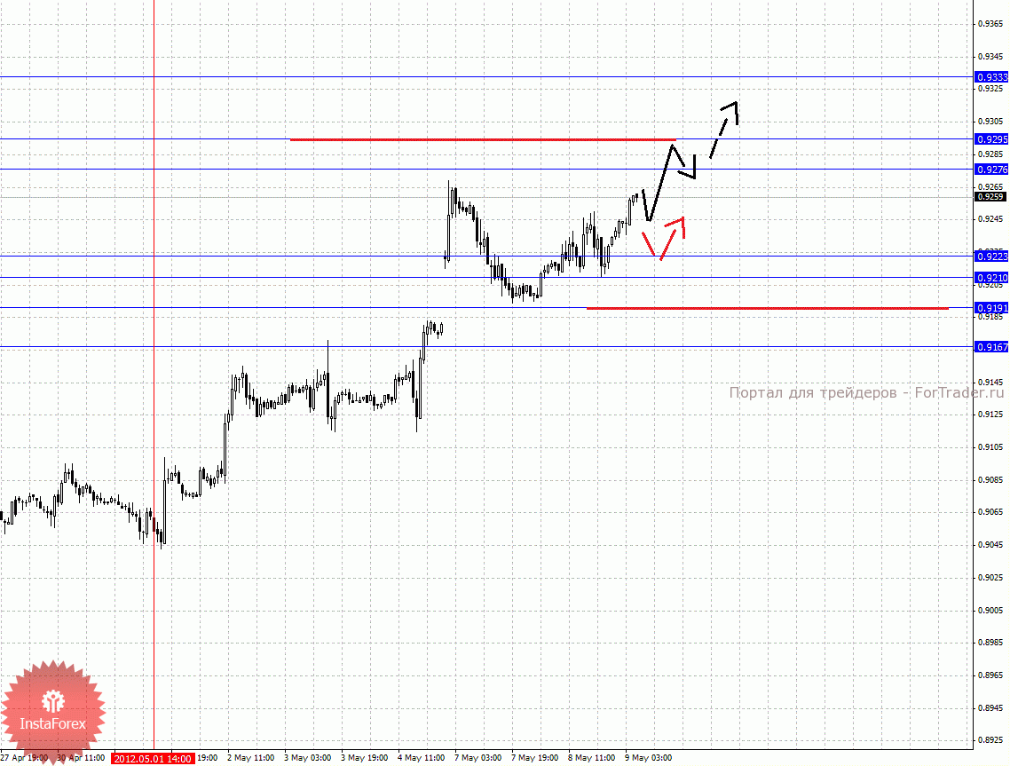 По паре Доллар/Франк ключевым уровня являются: 0.9333, 0.9295, 0.9276, 0.9223, 0.9210, 0.9191 и 0.9167. Здесь краткосрочное восходящее движение ожидаем в коридоре 0.9276 – 0.9295, пробой последнего значения должен сопровождаться выраженным восходящим движением, в данном случае потенциальная цель – 0.9333, по достижении этого уровня ожидаем откат книзу. Краткосрочное нисходящее движение возможно в коридоре 0.9223 – 0.9210, отсюда высока вероятность разворота кверху, пробой уровня 0.9210 будет располагать к развитию нисходящей структуры, в данном случае первая цель 0.9191, возле этого уровня ожидаем консолидацию. Потенциальным значением для низа считаем уровень 09167, до которого ожидаем оформления начальных условий для цикла.