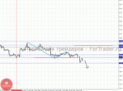 По паре Доллар/Йена ключевыми уровнями являются: 80.68, 80.42, 80.31, 79.86, 79.69 и 79.36. Здесь ключевые цели остались без изменения и  цена близка к тому, чтобы развить нисходящую тенденцию. Продолжения движения книзу ожидаем после выхода цены из коридора 79.86 – 79.69, в данном случае потенциальная цель – 79.36, по достижении этого уровня ожидаем консолидацию. Диапазон 80.31 – 80.42 является ключевым сопротивлением для верха, его проход ценой будет располагать к развитию восходящей структуры, в данном случае потенциальная цель 80.68.