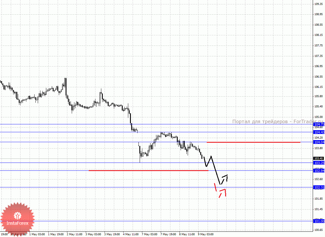 По паре Евро/Йена ключевыми уровнями являются: 104.73, 104.43, 104.04, 103.25, 102.94, 102.31 и 101.00. Здесь краткосрочное нисходящее движение ожидаем в коридоре 103.25 – 102.94, пробой последнего значения позволит рассчитывать на движение к 102.31, по достижении этого уровня мы ожидаем откат кверху, его пробой будет сопровождаться неустойчивым движением книзу, в данном случае потенциальная цель 101.00. Уровень 104.04 является ключевым сопротивлением для верха, его пробой приведет к движению до 104.43. Потенциальным значением для верха считаем уровень 104.73, до которого ожидаем оформления начальных условий.