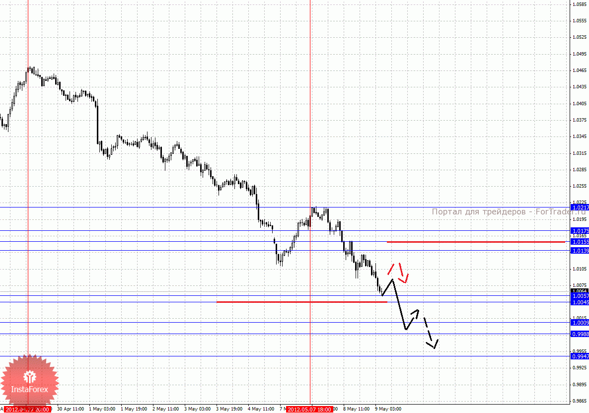 По паре Австралийский доллар/Доллар ключевыми уровнями являются: 1.0217, 1.0175, 1.0155, 1.0139, 1.0057, 1.0045, 1.0009, 0.9988 и 0.9947. Здесь нисходящую структуру от 7 мая мы рассматриваем в качестве локальных начальных условий. Продолжения движения книзу ожидаем после прохода ценой шумового диапазона 1.0057 – 1.0045, в данном случае цель 1.0009, в коридоре 1.0009 – 0.9988 консолидация цены. Потенциальным значением для низа считаем уровень 0.9947, по достижении которого ожидаем откат кверху. Корректировочное восходящее движение возможно в коридоре 1.0139 – 1.0155, пробой последнего значения приведет к углубленной коррекции, в данном случае цель 1.0175, от этого уровня высока вероятность разворота книзу, его пробой будет располагать к развитию восходящей структуры, в данном случае потенциальная цель 1.0217.