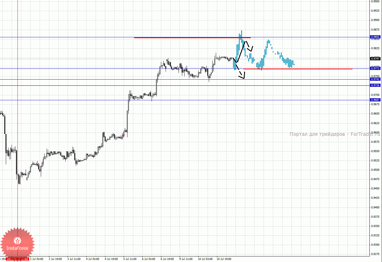 По паре Доллар/Франк ключевым уровня являются: 0.9855, 0.9771, 0.9742, 0.9726 и 0.9687. Здесь в качестве потенциальной цели для восходящего движения рассматриваем уровень 0.9855, по достижении которого ожидаем откат книзу. Пробой уровня 0.9771 будет сопровождаться краткосрочным движением книзу, в данном случае цель – 0.9742. Проход ценой шумового диапазона 0.9742 – 0.9726 позволит рассчитывать на формирование нисходящей структуры, здесь потенциальная цель 0.9687.