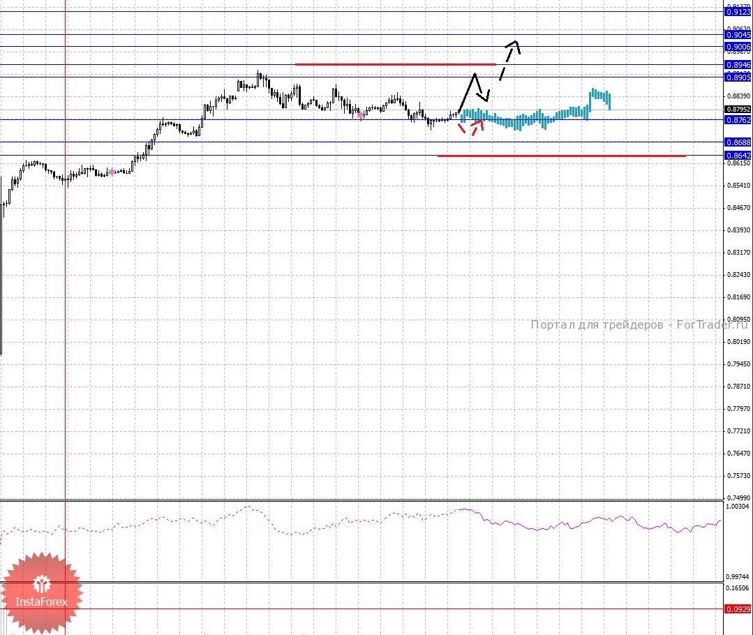 По паре Доллар/Франк ключевым уровня являются: 0.9123, 0.9045, 0.9006, 0.8946, 0.8905, 0.8762, 0.8688 и 0.8642. Здесь продолжения движения к низу, ожидаем после очередного пробоя уровня 0.8762, в данном случае цель 0.8688. В целом, такое неустойчивое движение к низу, на текущий момент, обусловлено отсутствием выраженных начальных условий. Диапазон 0.8688 – 0.8642 шумовой, до него мы ожидаем формирования больших начальных условий для развития нисходящего цикла. Для восходящего движения мы пока не наблюдаем каких-либо локальных начальных условий и здесь ключевые уровни остались без изменения.