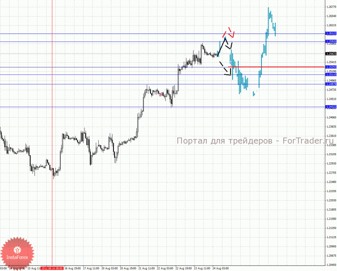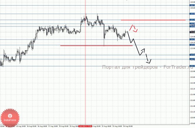 По паре Фунт/Иена ключевыми уровнями являются: 125.40, 125.14, 124.98, 124.85, 124.29, 124.05, 123.62, 123.44 и 123.13. Здесь от 21 августа формируется потенциал для развития нисходящего цикла. Краткосрочное нисходящее движение ожидаем в диапазоне 124.29 – 124.05, пробой последнего значения должен сопровождаться выраженным нисходящим движением, в данном случае цель 123.62, в коридоре 123.62 – 123.44 консолидация цены. Потенциальным значением для низа считаем уровень – 123.13, по достижении которого ожидаем откат кверху. Краткосрочное восходящее движение возможно в коридоре 124.85 – 124.98, пробой последнего значения приведет к углубленному движению, в данном случае цель – 125.14, от этого уровня высока вероятность разворота книзу, его пробой окажет негативное влияние на развитие нисходящей структуры от 21 августа, в данном случае потенциальная цель – 125.40.Торговые рекомендации: Buy: 124.85 Take profit: 124.95