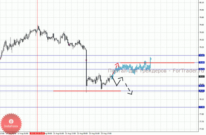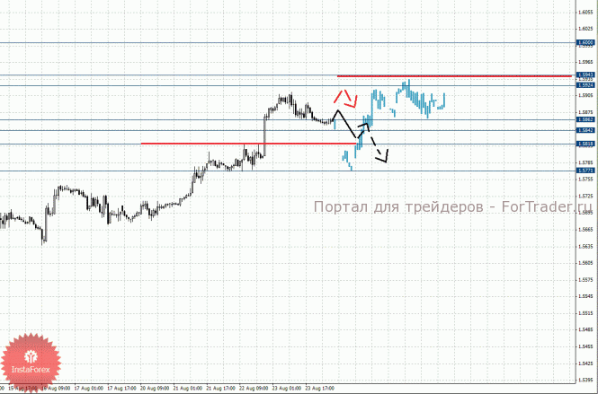 По паре Евро/Доллар и Доллар/Франк мы ожидаем выполнения коррекционного движения от основной тенденции 16 августа. По паре Фунт/Доллар также ожидаем коррекцию от восходящей структуры. По паре Доллар/Иена следим за нисходящим циклом от 20 августа. По паре Евро/Иена от 21 августа формируется потенциал для нисходящего движения, аналогичную ситуацию наблюдаем и по паре Фунт/Иена. Прогноз на 24 августа: