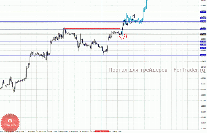 По паре Евро/Доллар важными уровнями являются: 1.2656, 1.2629, 1.2613, 1.2578, 1.2524, 1.2510, 1.2495 и 1.2463. Здесь от 28 августа формируется локальная структуры для продолжения восходящей тенденции. Продолжения движения кверху ожидаем после пробоя 1.2578, в данном случае цель 1.2613, в коридоре 1.2613 – 1.2629 консолидация цены. Потенциальным значением для верха считаем уровень 1.2656, по достижении которого ожидаем откат книзу. Краткосрочное нисходящее движение возможно в коридоре 1.2524 – 1.2510, пробой последнего значения приведет к углубленному движению, здесь цель 1.2495, пробой которого в свою очередь будет располагать к развитию нисходящей структуры, в данном случае потенциальная цель – 1.2463.