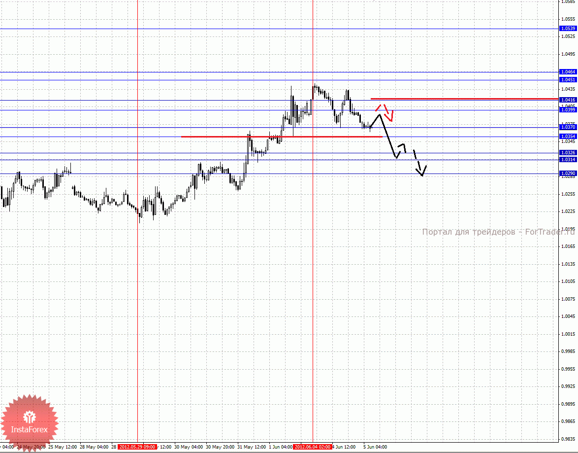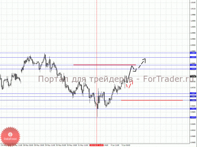 По паре Доллар/Канадский доллар ключевыми уровнями являются: 1.0539, 1.0464, 1.0451, 1.0416, 1.0399, 1.0370, 1.0354, 1.0326, 1.0314 и 1.0290. Здесь продолжения развития нисходящей структуры от 4 июня ожидаем после выхода цены из диапазона 1.0370 – 1.0354, в данном случае цель 1.0326, в коридоре 1.0326 – 1.0314 консолидация цены. Потенциальным значением для низа считаем уровень 1.0290, по достижении которого ожидаем оформления больших начальных условий. Краткосрочное восходящее движение возможно в коридоре 1.0399 – 1.0416, пробой последнего значения приведет к отмене нисходящей структуры от 4 июня, в данном случае цель 1.0451. Диапазон 1.0451 – 1.0464 шумовой и является ключевым сопротивлением для развития восходящей структуры в масштабе Н1.