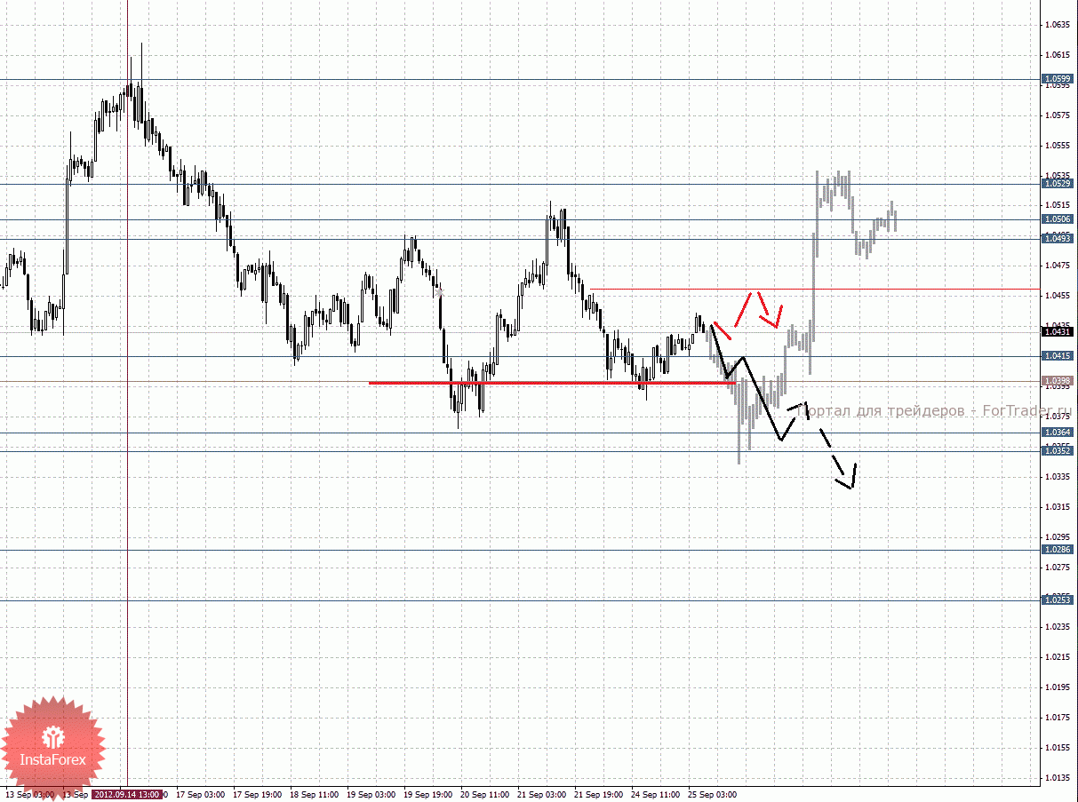 По паре Австралийский доллар/Доллар ключевыми уровнями являются: 1.0599, 1.0529, 1.0506, 1.0493, 1.0415, 1.0398, 1.0364, 1.0352, 1.0286 и 1.0253. Здесь нисходящую структуру от 14 сентября мы рассматриваем в качестве среднесрочных начальных условий для нисходящего цикла. Продолжения движения книзу ожидаем после прохода ценой шумового диапазона 1.0415 – 1.0398, в данном случае цель 1.0364, возле этого уровня консолидация цены. Проход ценой уровня 1.0352, должен сопровождаться импульсивным движением к уровню 1.0286. Потенциальным значением для низа считаем уровень 1.0253, по достижении которого ожидаем консолидированное движение. Диапазон 1.0493 – 1.0506 является ключевой поддержкой для нисходящей структуры от 14 сентября, его пробой приведет к движению до 1.0529, пробой которого, в свою очередь, отменит развитие нисходящей тенденции, в данном случае мы ожидаем оформления выраженных начальных условий для верха.