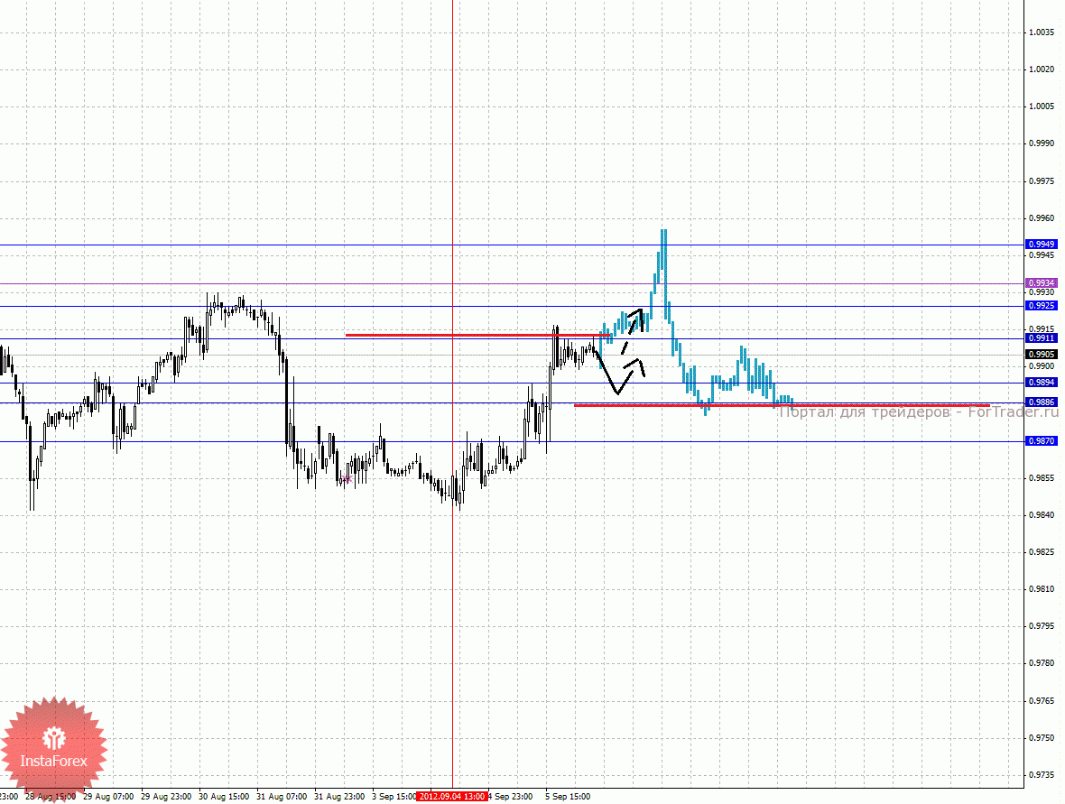 По паре Доллар/Канадский доллар ключевыми уровнями являются: 0.9949, 0.9934, 0.9925, 0.9911, 0.9894, 0.9886 и 0.9870. Здесь от 4 сентября формируется потенциал для развития восходящей тенденции. Продолжения движения кверху ожидаем после пробоя 0.9911, в данном случае цель – 0.9925, в коридоре 0.9925 – 0.9934 консолидация цены. Потенциальным значением для верха считаем уровень 0.9949, по достижении которого ожидаем откат книзу. Краткосрочное нисходящее движение возможно в коридоре 0.9894 – 0.9886, пробой последнего значения приведет к углубленной коррекции, здесь потенциальная цель – 0.9870, от этого уровня мы ожидаем последний разворот кверху, его пробой будет располагать к развитию нисходящей тенденции в масштабе Н1, однако предварительно необходимо оформление начальных условий для нисходящего цикла.