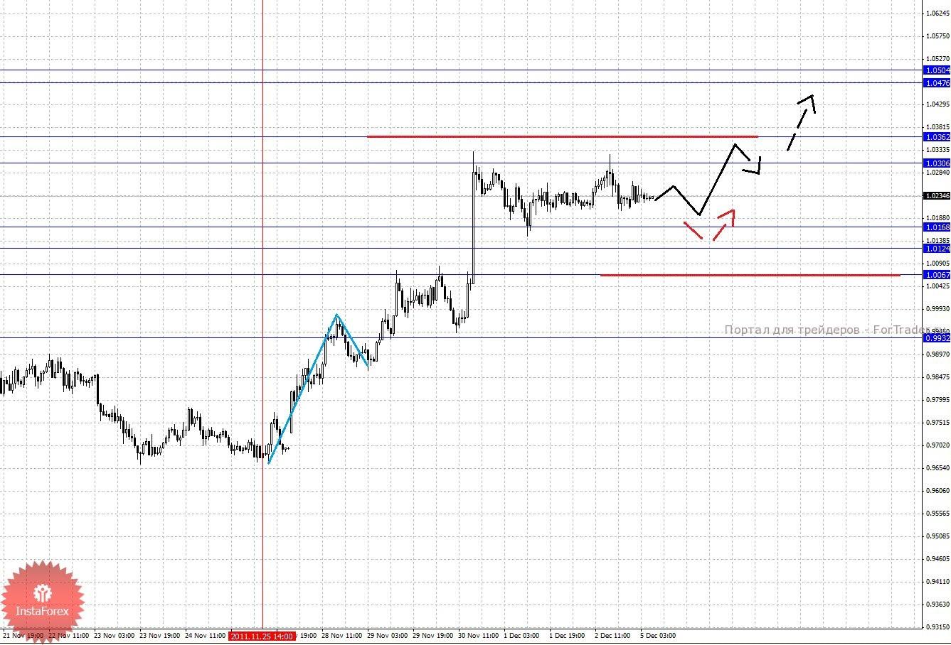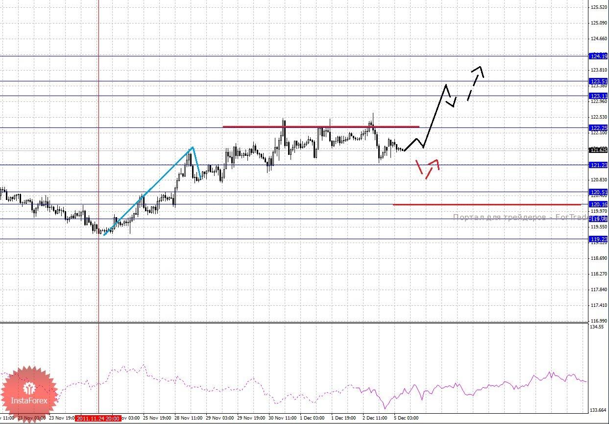По паре Фунт/Йена ключевыми уровнями являются: 123.51, 123.11, 122.25, 121.70, 120.51, 120.16, 119.78 и 119.23. Здесь восходящую структуру от 24 ноября мы рассматриваем в качестве среднесрочных начальных условий. Продолжения движения кверху ожидаем после пробоя 122.25, в данном случае цель 123.11, по достижении которого ожидаем консолидированное движение в диапазоне 123.11 – 123.51. Потенциальным значением для верха считаем уровень 124.19, от которого ожидаем откат книзу. Краткосрочное движение книзу ожидаем после пробоя 121.23, здесь цели не определены. Корректировочное нисходящее движение возможно в диапазоне 120.51 – 120.16, пробой последнего значения приведет к углубленному движению, здесь цель 119.78, этот уровень является ключевой поддержкой для верха, его пробой отменит развитие данной структуры и здесь первая цель 119.23.