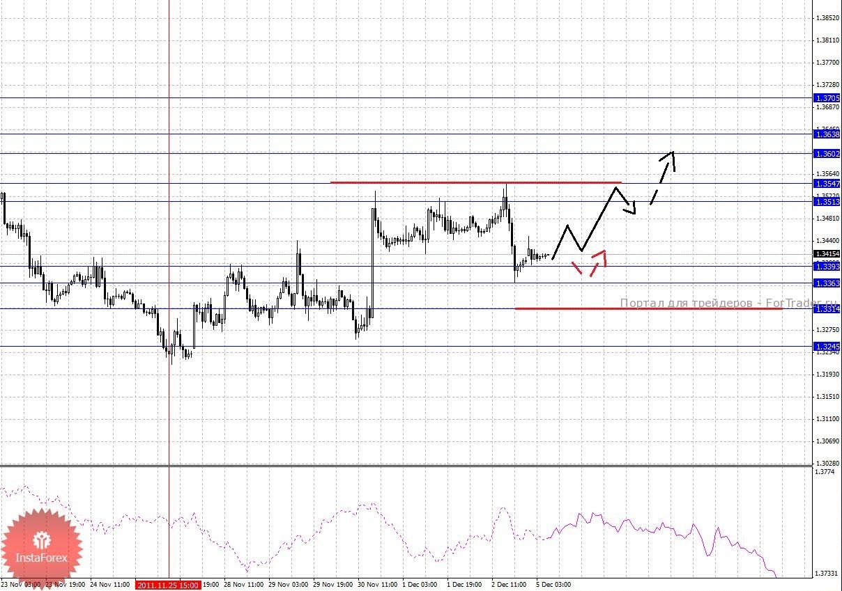 По паре Евро/Доллар важными уровнями являются: 1.3705, 1.3638, 1.3602, 1.3547, 1.3513, 1.3393, 1.3363, 1.3314 и 1.3245. Здесь мы пока продолжаем следить за восходящим циклом от 25 ноября, однако впоследствие данную структуру рационально рассмотреть как среднесрочные начальные условия. Краткосрочное движение кверху ожидаем в диапазоне 1.3513 – 1.3547, пробой последнего значения приведет к развитию выраженного движения, в данном случае цель 1.3602, в коридоре 1.3602 – 1.3638 консолидация цены. Потенциальным значением для верха считаем уровень 1.3705, по достижении которого ожидаем откат книзу. Корректировочное нисходящее движение возможно в диапазоне 1.3393 – 1.3363, пробой последнего значения окажет негативное влияние на развитие восходящей структуры от 25 ноября, в данном случае потенциальная цель 1.3314, от этого уровня мы ожидаем последний разворот кверху. Уровень 1.3245 является ключевым сопротивлением для нисходящего движения и интересен с точки зрения среднесрочной перспективы.