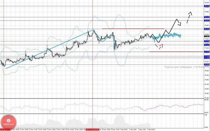 По паре Доллар/Йена ключевыми уровнями являются: 79.31, 78.81, 78.67, 77.73, 77.57, 77.26, 77.06, 76.98 и 76.69. Здесь, восходящую структуру от 18 ноября мы рассматриваем в качестве долгосрочных начальных условий для восходящего цикла. Продолжения движения кверху ожидаем после пробоя 78.29, в данном случае цель 78.67, в коридоре 78.67 – 78.81 консолидация цены. Пробой уровня 78.81 продолжит развитие восходящей тенденции в масштабе Н1, в данном случае потенциальная цель 79.31. Краткосрочное нисходящее движение ожидаем в диапазоне 77.73 – 77.57, отсюда ожидаем разворот к верху, пробой последнего значения окажет негативное влияние на развитие восходящей структуры, здесь цель 77.26. Диапазон 77.06 – 76.98 является ключевой поддержкой для восходящей структуры от 18 ноября, проход его ценой приведет к отмене данной тенденции и здесь первая цель 76.69.