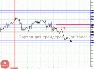 По паре Евро/Доллар важными уровнями являются: 1.3338, 1.3310, 1.3268, 1.3225, 1.3213, 1.3195, 1.3153, 1.3118 и 1.3095. Здесь мы продолжаем следить за развитием восходящего цикла от 16 апреля. Продолжения движения кверху ожидаем после пробоя 1.3268, в данном случае цель – 1.3310. Потенциальным значением для верха считаем уровень – 1.3338, по достижении которого ожидаем консолидированное движение в коридоре 1.3310 – 1.3338. Корректировочное нисходящее движение возможно в коридоре 1.3225 – 1.3213, пробой последнего значения приведет к углубленной коррекции, в данном случае цель – 1.3195, от этого уровня высока вероятность разворота кверху, его пробой окажет негативное влияние на развитие восходящей тенденции в масштабе Н1, в данном случае потенциальная цель – 1.3153.