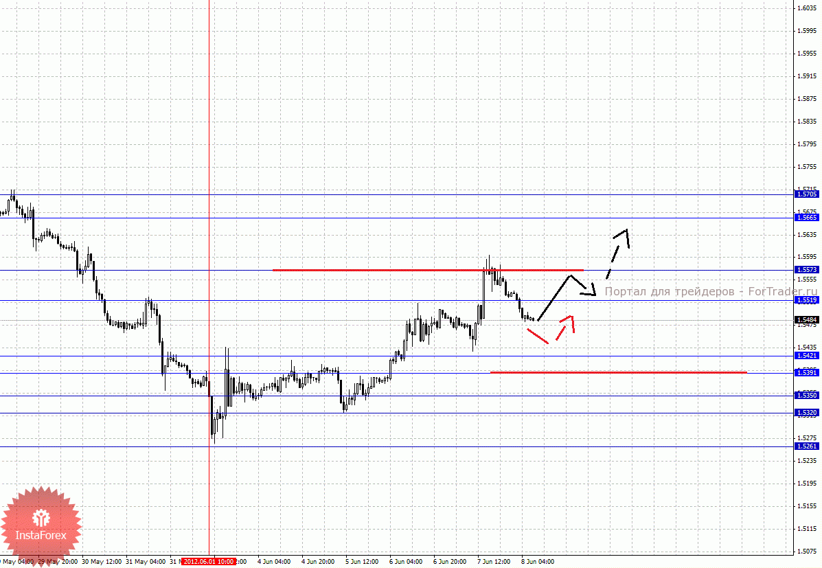 По паре Фунт/Доллар ключевыми уровнями являются: 1.5705, 1.5665, 1.5573, 1.5519, 1.5421, 1.5391, 1.5350, 1.5320 и 1.5261. Здесь цели остались без изменения и мы продолжаем следить за восходящей структурой от 1 июня. Продолжения движения кверху ожидаем после пробоя 1.5519, в данном случае цель 1.5573, в этом диапазоне консолидация цены. Пробой уровня 1.5573 должен сопровождаться импульсивным движением к уровню 1.5665. Потенциальным значением для верха считаем уровень 1.5705, по достижении которого ожидаем консолидированное движение в коридоре 1.5665 – 1.5705. Краткосрочное нисходящее движение возможно в коридоре 1.5421 – 1.5391, пробой последнего значения приведет к углубленной коррекции, здесь цель 1.5350, от этого уровня мы ожидаем последний разворот кверху. Проход ценой ключевой поддержки 1.5350 – 1.5320 приведет к отмене восходящей структуры от 1 июня и здесь первая цель 1.5261.