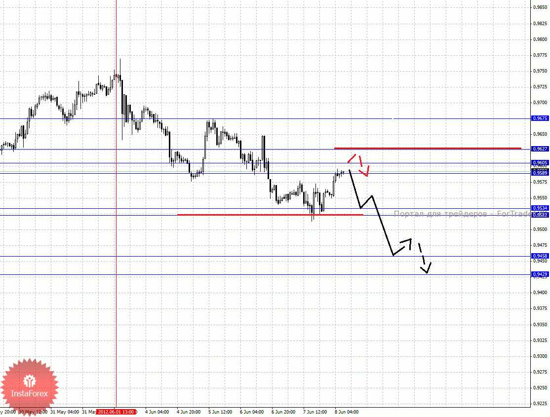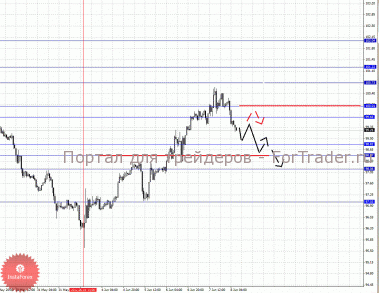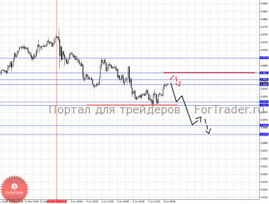 По паре Доллар/Франк ключевым уровня являются: 0.9675, 0.9627, 0.9605, 0.9589, 0.9534, 0.9522, 0.9548 и 0.9529. Здесь нисходящую структуру от 1 июня мы рассматриваем в качестве среднесрочных начальных условий для развития нисходящего цикла. Продолжения движения книзу ожидаем после прохода ценой шумового диапазона 0.9534 – 0.9522, в данном случае цель 0.9458. Потенциальным значением для низа считаем уровень 0.9429, по достижении которого ожидаем консолидированное движение в коридоре 0.9429 – 0.9458. Краткосрочное восходящее движение возможно в диапазоне 0.9589 – 0.9605, пробой последнего значения приведет к углубленной коррекции, в данном случае цель 0.9627, от этого уровня высока вероятность разворота книзу, однако его пробой окажет негативное влияние на последующее формирование нисходящей структуры в масштабе Н1.