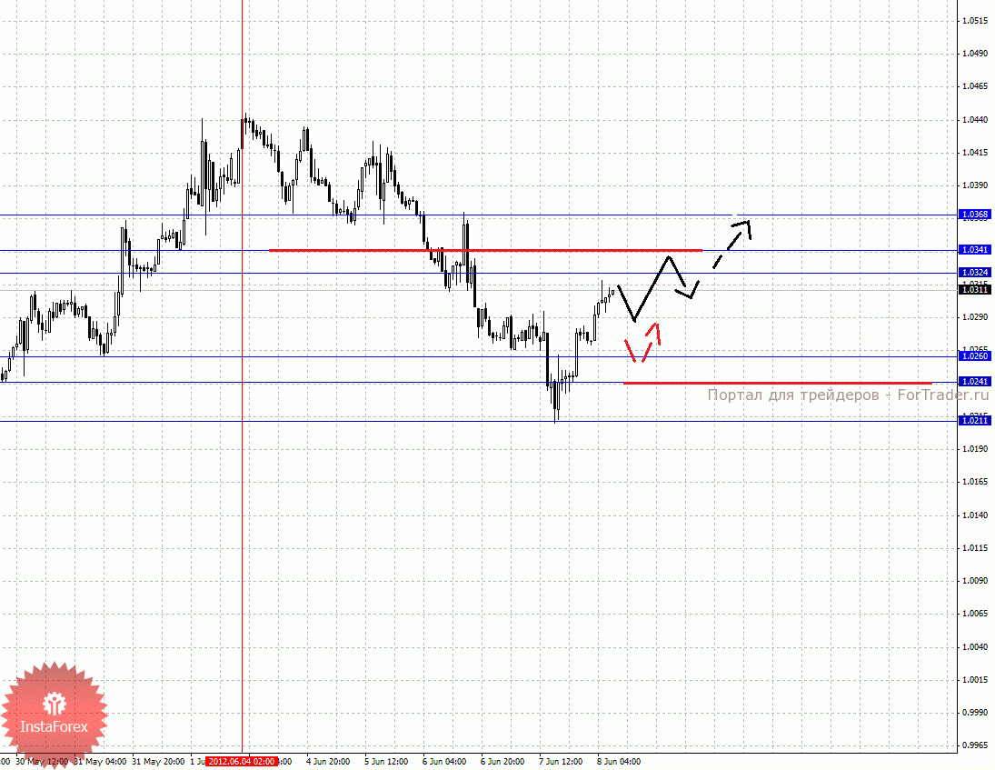 По паре Доллар/Канадский доллар ключевыми уровнями являются: 1.0368, 1.0341, 1.0324, 1.0260, 1.0241 и 1.0211. Здесь цена пока находится в корректировочной зоне от нисходящей структуры 4 июня. Краткосрочное движение кверху ожидаем в коридоре 1.0324 – 1.0341, пробой последнего значения позволит рассчитывать на движение к 1.0368, возле этого уровня ожидаем консолидацию, а также оформления выраженных начальных условий для последующего движения кверху. Диапазон 1.0260 – 1.0241 является ключевой поддержкой для развития коррекции, в нем мы ожидаем краткосрочное движение книзу, пробой уровня 1.0241 будет располагать к последующему нисходящему движению, в данном случае первая цель 1.0211.