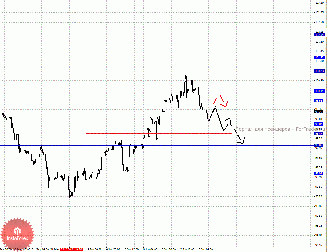 По паре Евро/Йена ключевыми уровнями являются: 102.04, 101.22, 100.73, 100.01, 99.66, 98.82, 98.47, 98.06 и 97.03. Здесь мы продолжаем следить за среднесрочной восходящей структурой от 1 июня. Краткосрочное восходящее движение возможно в коридоре 99.66 – 100.01, пробой последнего значения продолжит развитие восходящего цикла от 1 июня, в данном случае цель 100.73, в коридоре 100.73 – 101.22 консолидация цены. Потенциальным значением для верха считаем уровень 102.04, движение к которому ожидаем после пробоя 101.22. Краткосрочное нисходящее движение возможно в коридоре 98.82 – 98.47, пробой последнего значения приведет к углубленной коррекции, здесь цель 98.06, от этого уровня высока вероятность разворота кверху, его пробой окажет негативное влияние на развитие восходящей структуры в масштабе Н1. Уровень 97.03 пока интересен с точки зрения среднесрочной перспективы.