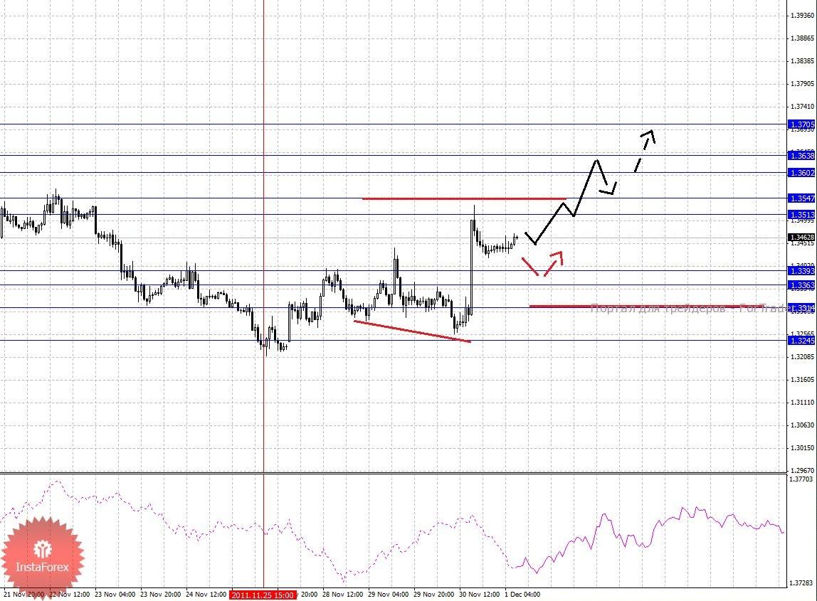 По паре Евро/Доллар важными уровнями являются: 1.3705, 1.3638, 1.3602, 1.3547, 1.3513, 1.3393, 1.3363, 1.3314 и 1.3245. Здесь мы продолжаем следить за восходящим циклом от 25 ноября. Краткосрочное движение кверху ожидаем в диапазоне 1.3513 – 1.3547, пробой последнего значения приведет к развитию выраженного движения, в данном случае цель 1.3602, в коридоре 1.3602 – 1.3638 консолидация цены. Потенциальным значением для верха считаем уровень 1.3705, по достижении которого, ожидаем откат книзу. Корректировочное нисходящее движение возможно в диапазоне 1.3393 – 1.3363, пробой последнего значения окажет негативное влияние на развитие восходящей структуры от 25 ноября, в данном случае потенциальная цель 1.3314, от этого уровня мы ожидаем последний разворот кверху. Уровень 1.3245 является ключевым сопротивлением для нисходящего движения и интересен с точки зрения среднесрочной перспективы.