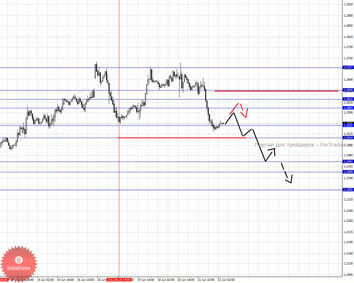 По паре Евро/Доллар важными уровнями являются: 1.2727, 1.2659, 1.2631, 1.2604, 1.2551, 1.2514, 1.2441, 1.2409 и 1.2355. Здесь краткосрочное нисходящее движение ожидаем в коридоре 1.2551 – 1.2514, пробой последнего значения должен сопровождаться импульсивным движением к уровню 1.2441, в коридоре 1.2441 – 1.2409 консолидация цены. Потенциальным значением для низа считаем уровень 1.2355, по достижении которого ожидаем откат кверху. Краткосрочное восходящее движение возможно в коридоре 1.2604 – 1.2631, пробой последнего значения приведет к углубленной коррекции, здесь цель 1.2659, от этого уровня высока вероятность разворота книзу, его пробой будет располагать к развитию восходящей структуры, в данном случае потенциальная цель 1.2727.