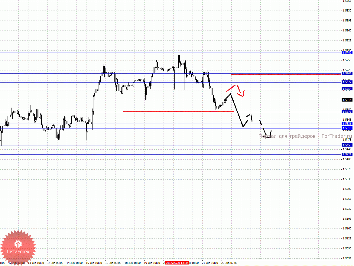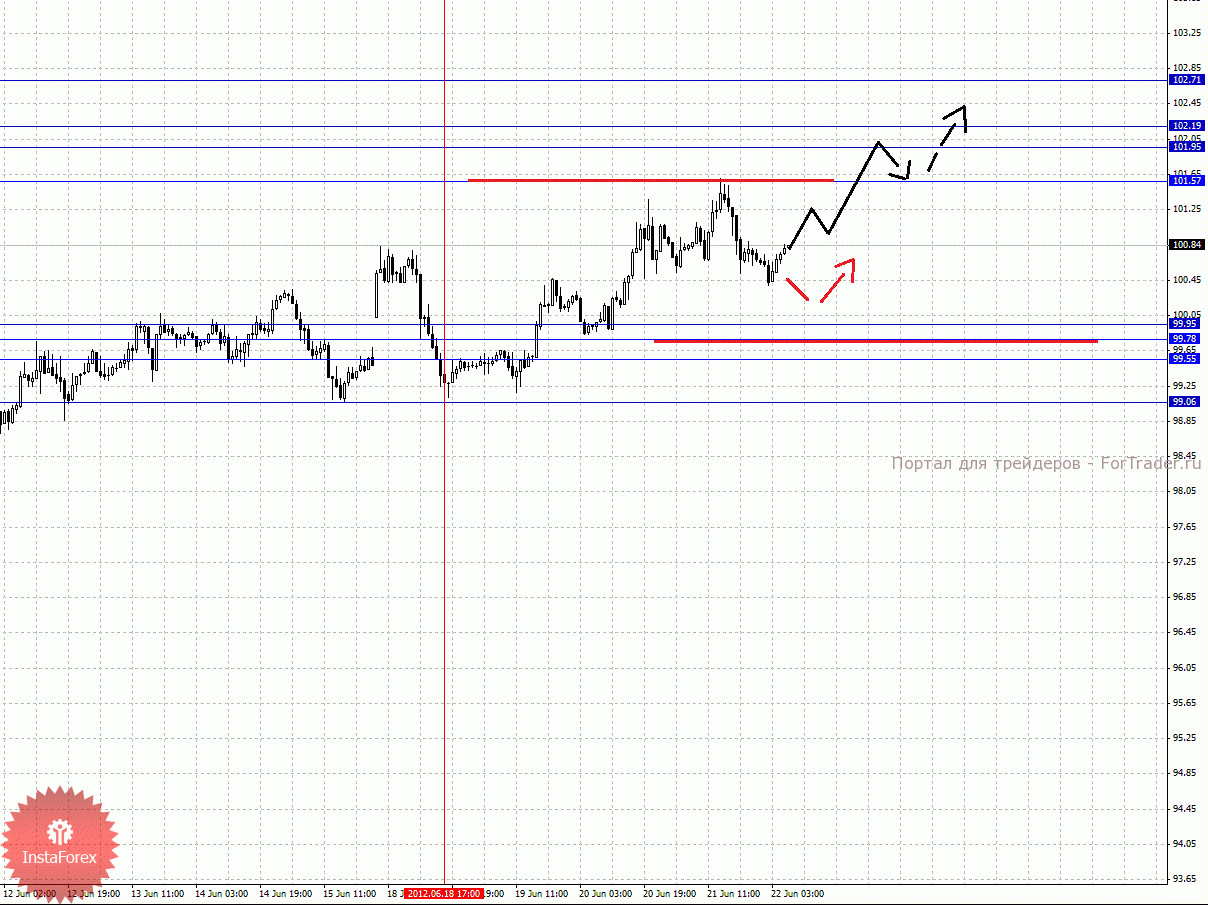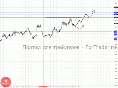 По паре Евро/Йена ключевыми уровнями являются: 102.71, 102.19, 101.95, 101.57, 99.95, 99.78, 99.55 и 99.06. Здесь мы следим за формированием восходящей структуры от 18 июня. Продолжения движения кверху ожидаем после пробоя 101.57, в данном случае цель – 101.95, в коридоре 101.95 – 102.19 консолидация цены. Потенциальным значением для верха считаем уровень 102.71, по достижении которого ожидаем откат книзу. Краткосрочное нисходящее движение ожидаем в коридоре 99.95 – 99.78, пробой последнего значения приведет к углубленному движению, в данном случае цель 99.55, от этого уровня высока вероятность разворота кверху, его пробой будет располагать к развитию нисходящей структуры, здесь цель – 99.06.