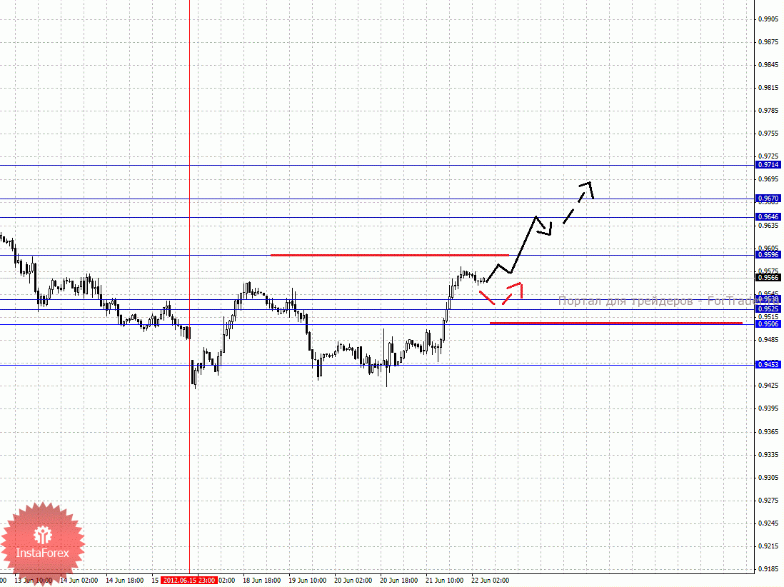 По паре Доллар/Франк ключевым уровня являются: 0.9714, 0.9670, 0.9646, 0.9596, 0.9538, 0.9525, 0.9506 и 0.9453. Здесь мы следим за развитием восходящей структуры от 15 июня. Продолжения движения кверху ожидаем после пробоя 0.9596, в данном случае цель 0.9646, в коридоре 0.9646 – 0.9670 консолидация цены. Потенциальным значением для верха считаем уровень 0.9714, движение к которому ожидаем после пробоя 0.9670. Корректировочное нисходящее движение возможно в коридоре 0.9538 – 0.9525, пробой последнего значения приведет к углубленной коррекции, здесь цель 0.9506, от этого уровня высока вероятность разворота кверху, его пробой будет располагать к развитию нисходящей структуры, в данном случае потенциальная цель 0.9453.
