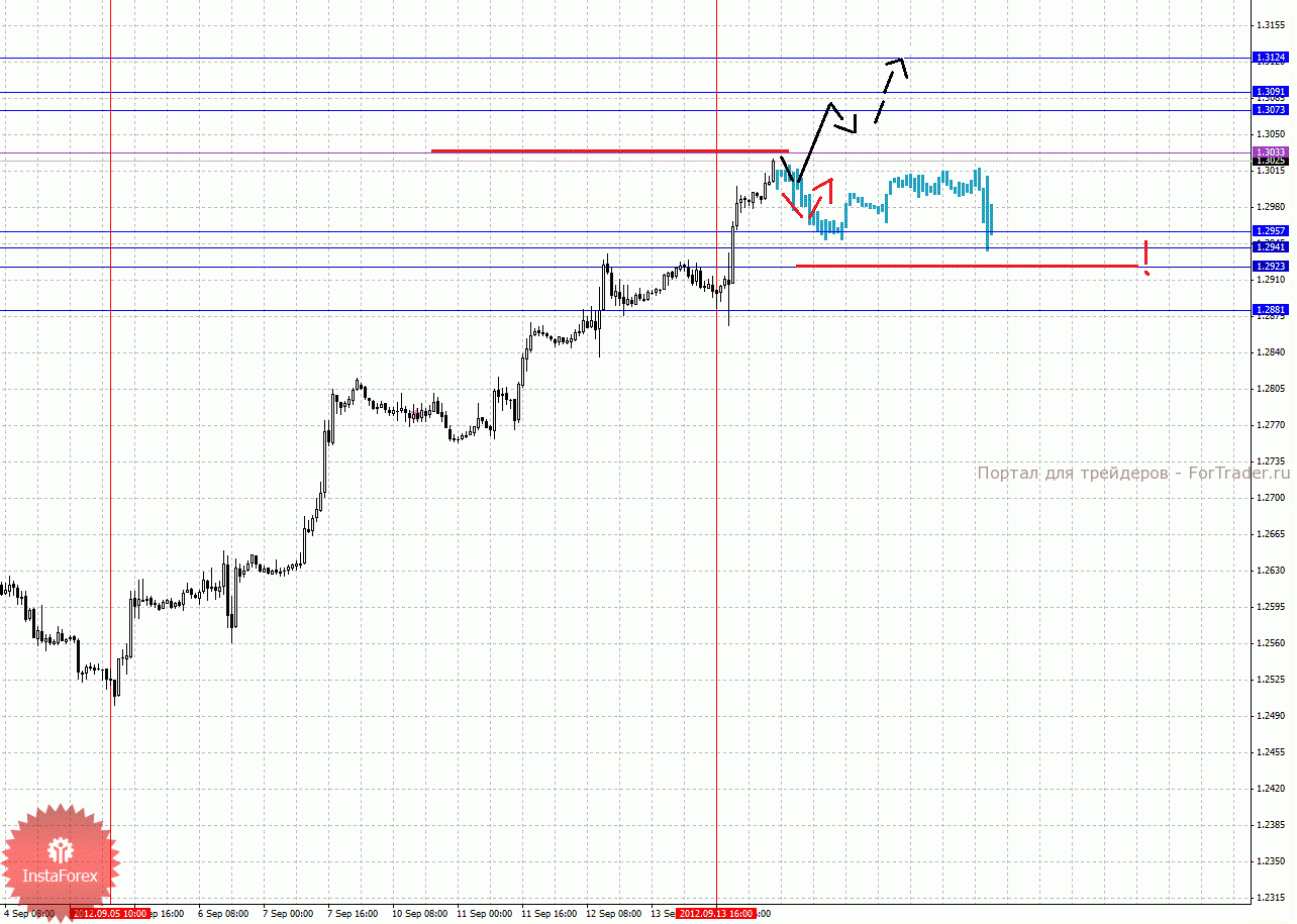 По паре Евро/Доллар важными уровнями являются: 1.3124, 1.3091, 1.3073, 1.3033, 1.2957, 1.2941, 1.2923 и 1.2881. Здесь восходящее движение от 13 сентября мы рассматриваем в качестве локальной структуры для продолжения восходящего тренда. Продолжения движения кверху ожидаем после пробоя 1.3033, в данном случае цель 1.3073, в коридоре 1.3073 – 1.3091 консолидация цены. Потенциальным значением для верха считаем уровень 1.3124, по достижении которого ожидаем откат книзу. Краткосрочное нисходящее движение возможно в коридоре 1.2957 – 1.2941, пробой последнего значения приведет к углубленному движению, здесь цель 1.2923, пробой которого, в свою очередь, будет располагать к развитию нисходящей структуры, в данном случае потенциальная цель 1.2881.