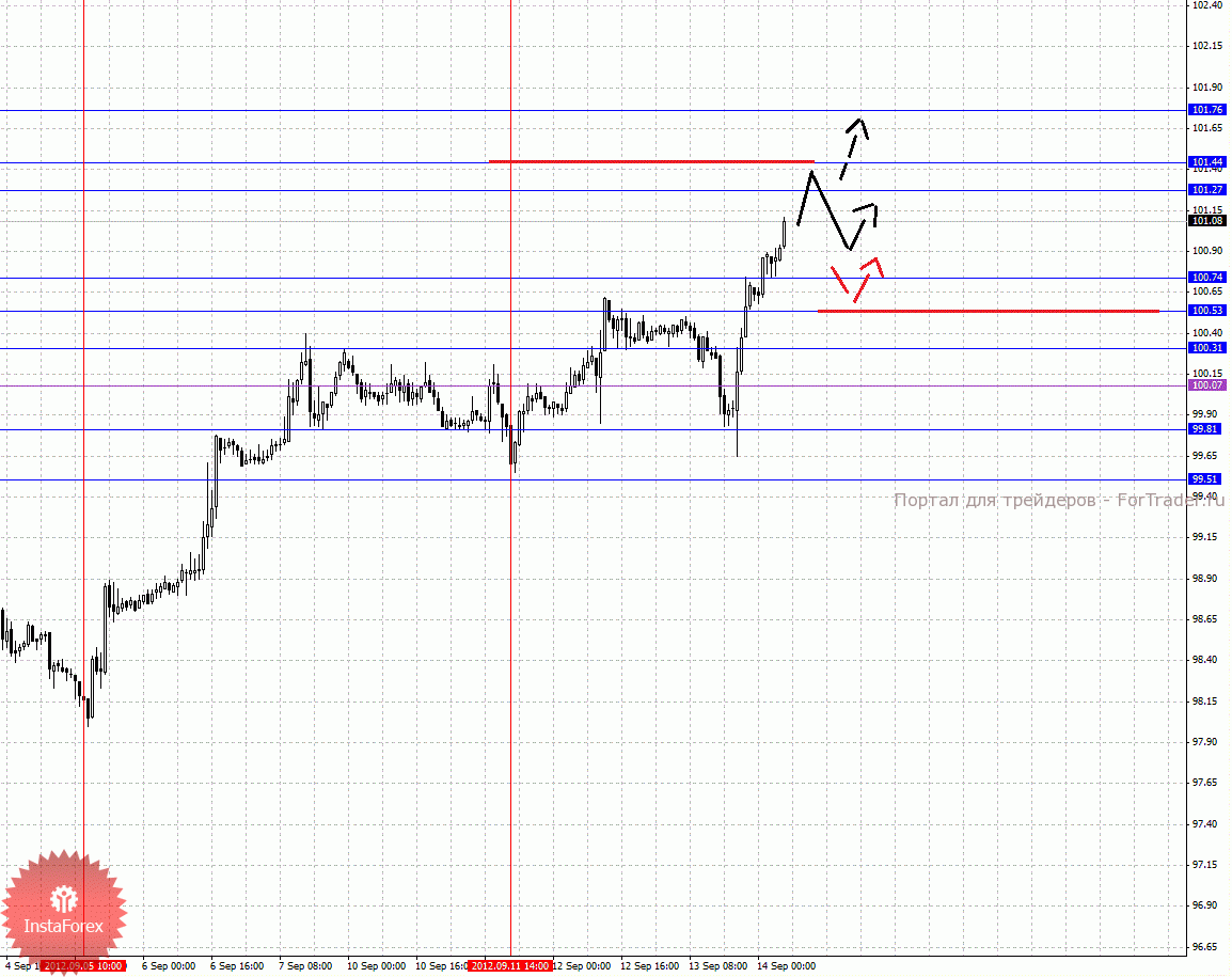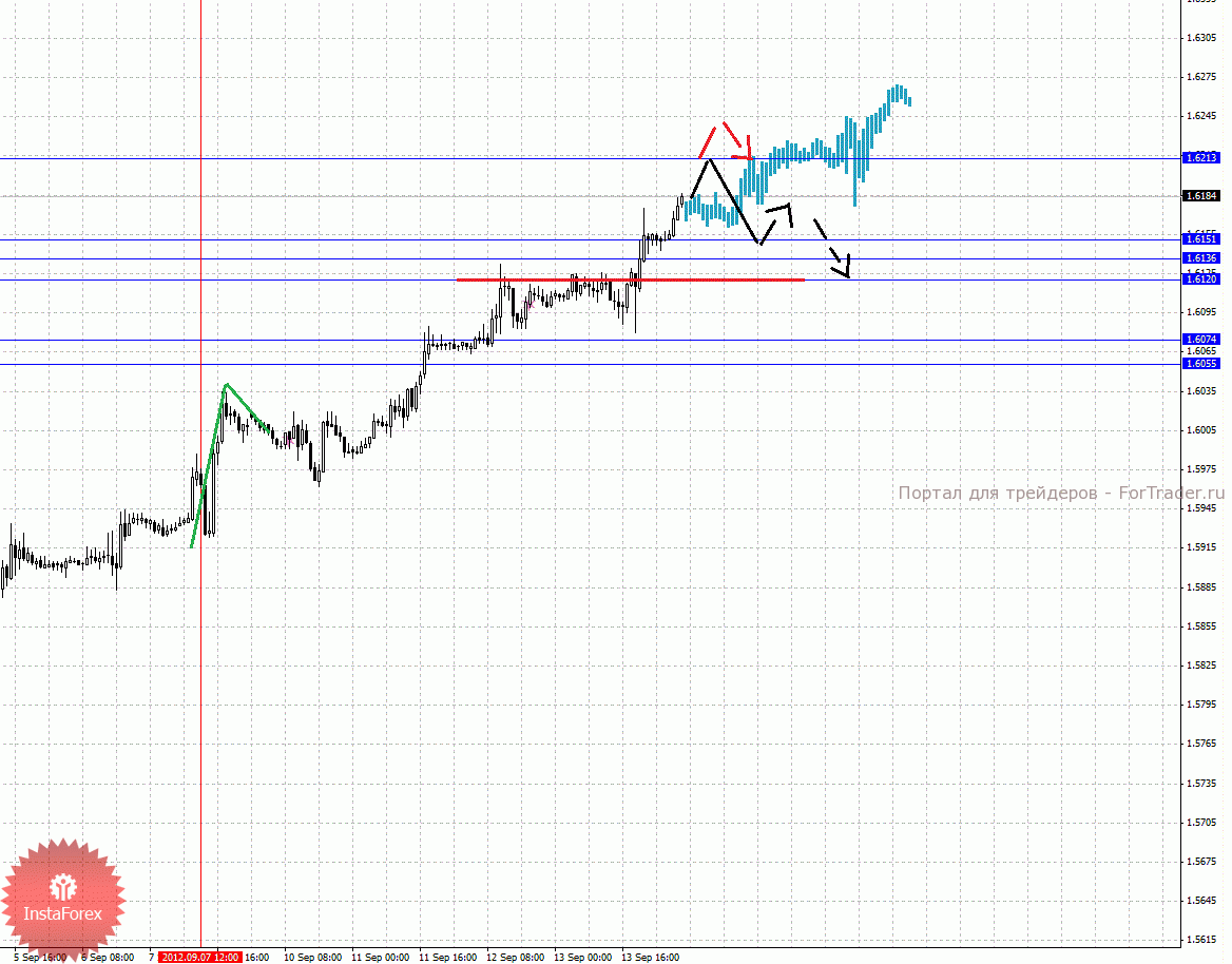 По паре Евро/Иена ключевыми уровнями являются: 101.76, 101.44, 101.27, 100.74, 100.53, 100.31, 100.07, 99.81 и 99.51. Здесь для продолжения движения кверху мы рассмотрели восходящую структуру от 11 сентября в качестве локальных начальных условий. В коридоре 101.27 – 101.44 ожидаем краткосрочное восходящее движение, пробой уровня 101.44 позволит рассчитывать на движение к потенциальной цели – 101.76, по достижении этого уровня ожидаем откат книзу. Краткосрочное нисходящее движение возможно в коридоре 100.74 – 100.53, пробой последнего значения приведет к углубленной коррекции, здесь цель 100.31, от этого уровня существуют вероятность разворота кверху, его пробой будет располагать к развитию нисходящей структуры, в данном случае первая цель 99.81.