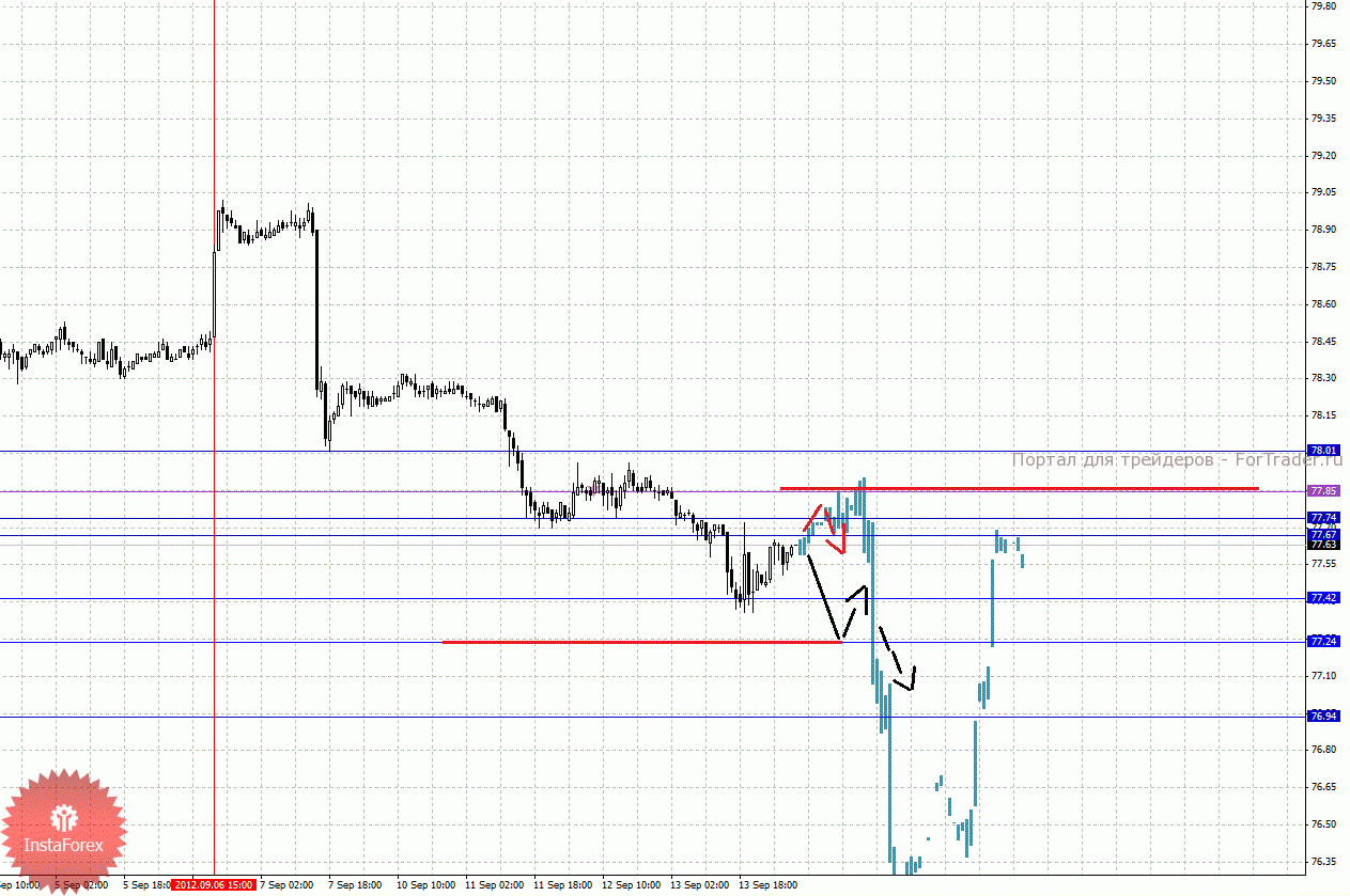 По паре Доллар/Иена ключевыми уровнями являются: 78.01, 77.85, 77.44, 77.67, 77.42, 77.24 и 76.94. Здесь продолжения движения книзу ожидаем после пробоя 77.42, в данном случае цель 77.24, в этом диапазоне консолидация цены. Потенциальным значением для нисходящей структуры от 6 сентября пока считаем уровень 76.94, движение к которому ожидаем после пробоя 77.24. Краткосрочное восходящее движение возможно в коридоре 77.67 – 77.74, пробой последнего значения приведет к углубленному движению, здесь цель 77.85, пробой которого, в свою очередь, будет располагать к формированию восходящей структуры, в данном случае потенциальная цель – 78.01.
