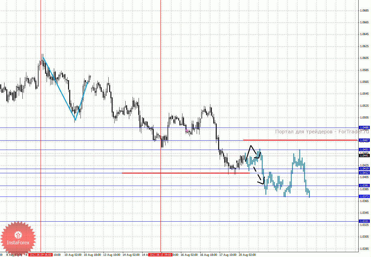 По паре Австралийский доллар/Доллар ключевыми уровнями являются: 1.0488, 1.0467, 1.0451, 1.0419, 1.0412, 1.0391, 1.0373 и 1.0331. Здесь мы продолжаем следить за развитием нисходящего цикла от 9 августа. Продолжения движения книзу,ожидаем после прохода ценой шумового диапазона 1.0419 – 1.0412, в данном случае цель 1.0391, в коридоре 1.0391 -1.0373 консолидация цены. Потенциальным значением для низа считаем уровень 1.0331, движение к которому ожидаем после пробоя 1.0370. Краткосрочное восходящее движение возможно в коридоре 1.0451 – 1.0467, пробой последнего значения приведет к углубленной коррекции, здесь цель 1.0488, до этого уровня мы ожидаем оформления начальных условий для последующего развития восходящего движения.
