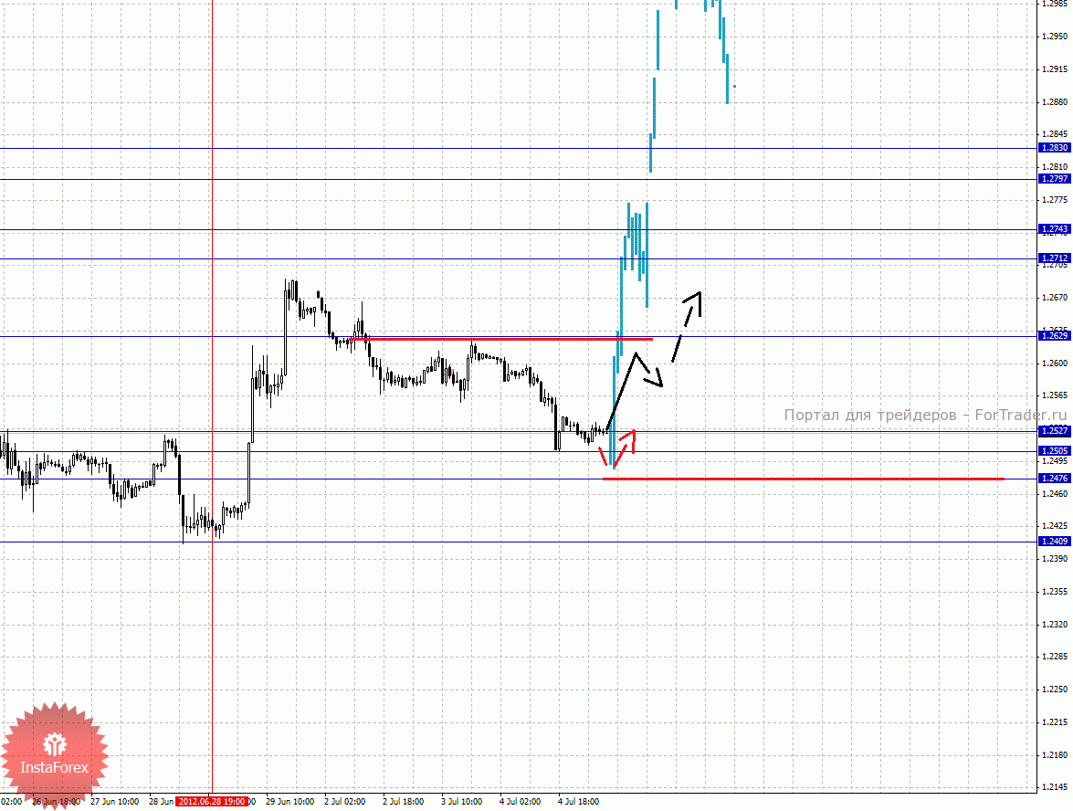 По паре Евро/Доллар важными уровнями являются: 1.2830, 1.2797, 1.2743, 1.2712, 1.2629, 1.2527, 1.2505, 1.2476 и 1.2409. Здесь цена пока находится в корректировочной зоне от восходящей структуры 28 июня. Консолидированное движение ожидаем в коридоре 1.2527 – 1.2505, пробой последнего значения приведет к углубленной коррекции, здесь цель 1.2476, от этого уровня высока вероятность разворота кверху, его пробой приведет к отмене развития восходящей структуры и в данном случае первая цель 1.2409. Уровень 1.2629 является ключевым сопротивлением для развития восходящей тенденции в масштабе Н1, его пробой позволит рассчитывать на движение к 1.2712, далее уровни для верха остались без изменения.