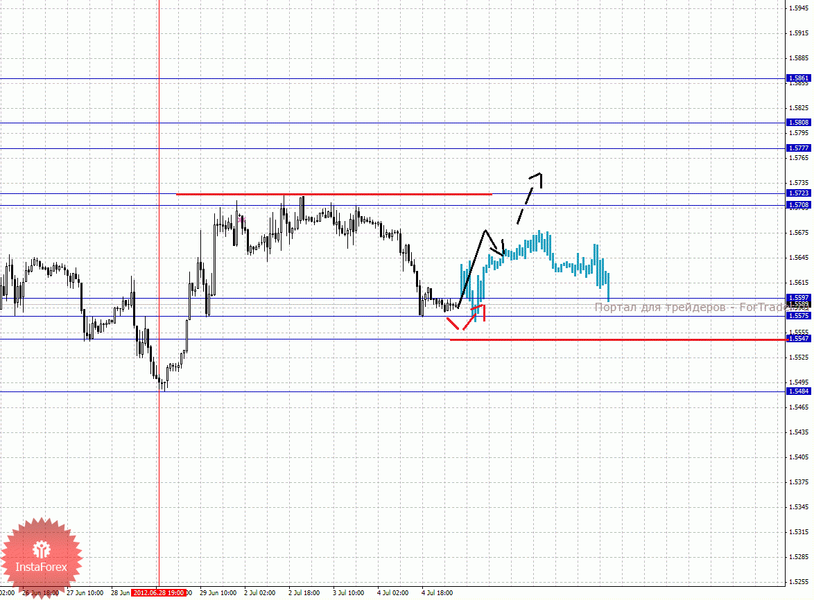 По паре Фунт/Доллар ключевыми уровнями являются: 1.5861, 1.5808, 1.5777, 1.5723, 1.5708, 1.5597, 1.5575, 1.5547 и 1.5484. Здесь мы продолжаем следить за развитием начальных условий для восходящего цикла от 28 июня, однако необходимо отметить, что на текущий момент цена близка к отмене данной структуры. Продолжения движения кверху ожидаем после прохода ценой шумового диапазона 1.5708 – 1.5723, в данном случае цель 1.5777, в коридоре 1.5777 – 1.5808 консолидация цены. Потенциальным значением для верха считаем уровень 1.5861, движение к которому ожидаем после пробоя 1.5810. Корректировочное нисходящее движение ожидаем в коридоре 1.5597 – 1.5575, пробой последнего значения приведет к углубленному движению, здесь цель 1.5547, от этого уровня мы ожидаем последний разворот кверху, его пробой будет располагать к развитию нисходящей структуры, в данном случае потенциальная цель 1.5484.