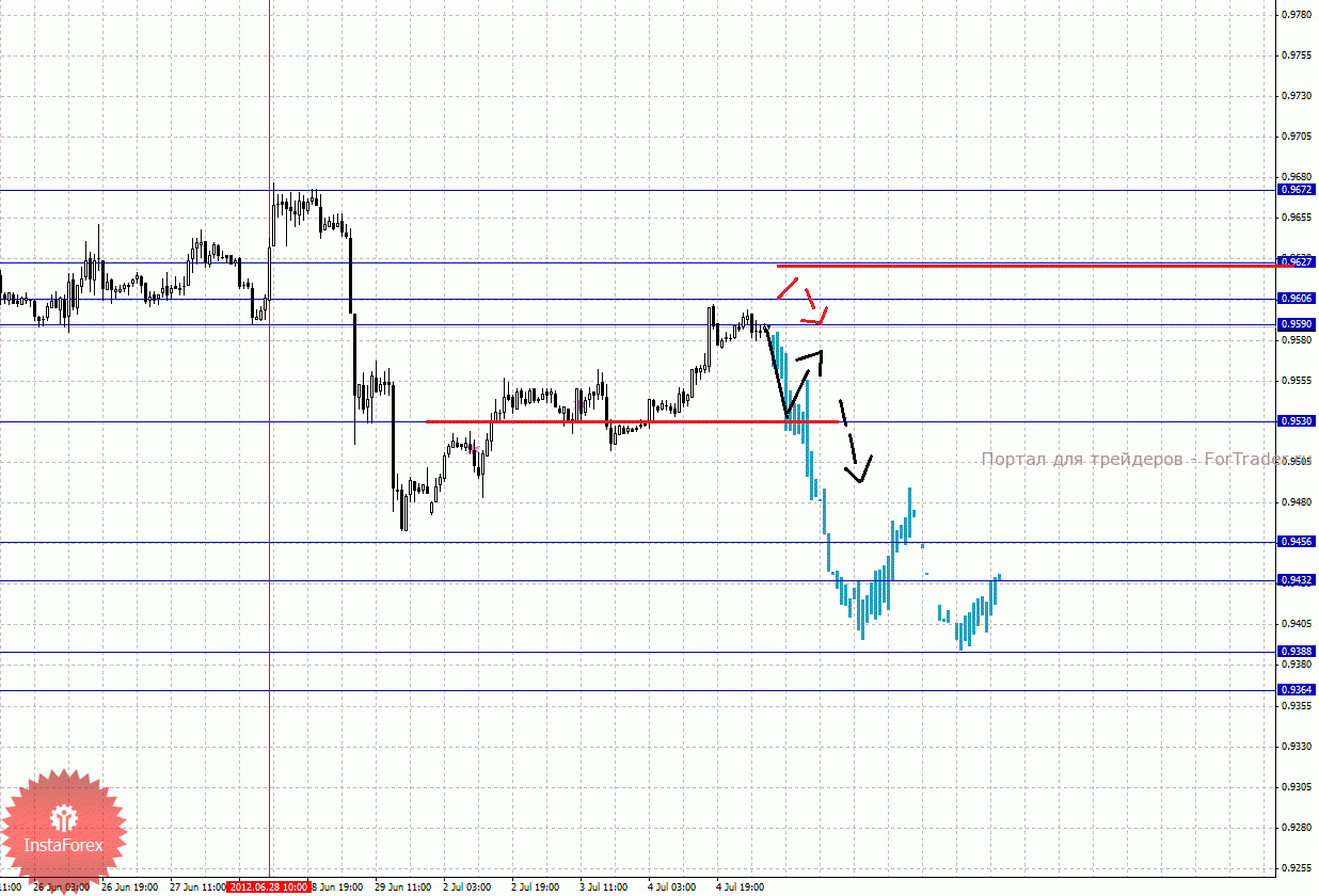 По паре Доллар/Франк ключевым уровня являются: 0.9672, 0.9627, 0.9606, 0.9590, 0.9530, 0.9456, 0.9432, 0.9388 и 0.9364. Здесь цена находится в корректировочной зоне от нисходящей структуры 28 июня. Консолидированное движение ожидаем в коридоре 0.9590 – 0.9606, пробой последнего значения приведет к углубленному движению, здесь цель 0.9627, от этого уровня мы ожидаем последний разворот книзу, его пробой приведет к отмене нисходящей структуры от 28 июня, в данном случае первая цель 0.9672. Уровень 0.9530 является ключевым сопротивлением для развития нисходящей тенденции в масштабе Н1, его пробой позволит рассчитывать на движение к 0.9456, далее уровни для низа остались без изменения.