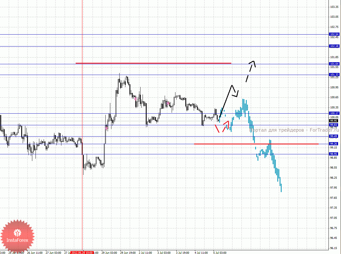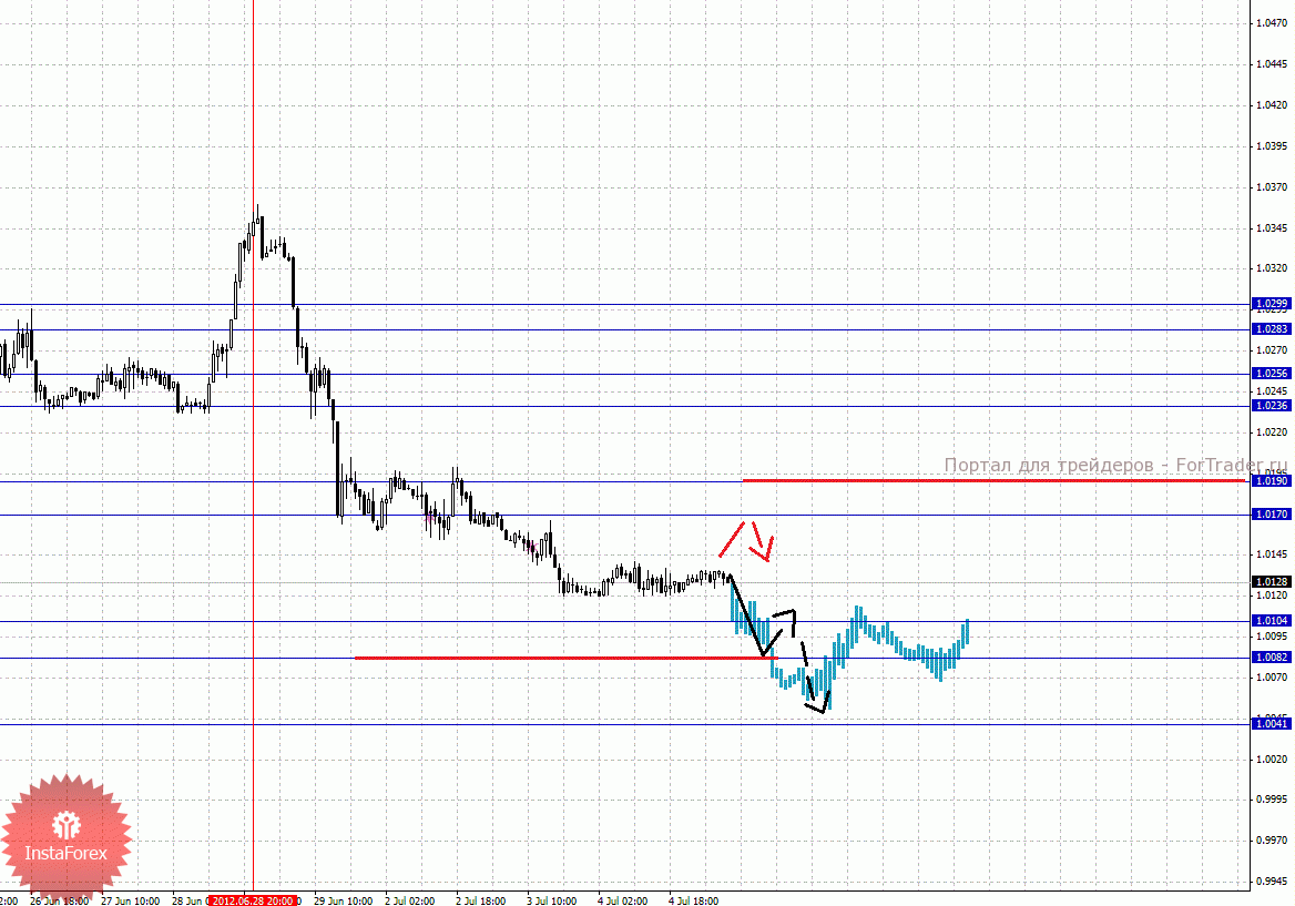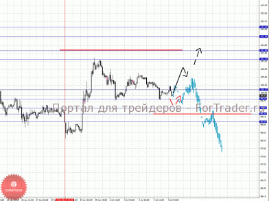 По паре Евро/Иена ключевыми уровнями являются: 102.54, 102.18, 101.64, 101.33, 101.17, 99.83, 99.49, 99.26 и 98.95. Здесь мы следим за развитием восходящей структуры от 28 июня. Краткосрочное восходящее движение ожидаем в коридоре 101.33 – 101.64, пробой последнего значения должен сопровождаться выраженным восходящим движением к уровню 102.18. Потенциальным значением для верха считаем уровень 102.54, по достижении которого ожидаем консолидированное движение в коридоре 102.18 – 102.54. Краткосрочное нисходящее движение возможно в диапазоне 100.17 – 99.83, отсюда высока вероятность разворота кверху, пробой уровня 99.83 окажет негативное влияние на развитие восходящей тенденции в масштабе Н1, здесь первая цель 99.49. Диапазон 99.49 – 99.26 является ключевой поддержкой для верха, его пробой будет располагать к развитию нисходящей структуры, в данном случае потенциальная цель – 98.95.