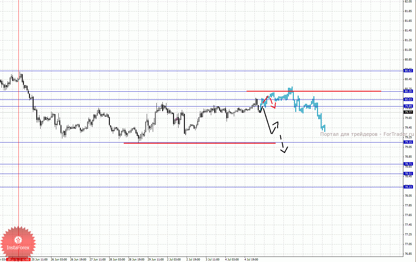 По паре Доллар/Иена ключевыми уровнями являются: 80.62, 80.20, 80.03, 79.89, 79.15, 78.71, 78.50 и 78.23. Здесь ключевые цели пока остались без изменения и мы продолжаем следить за нисходящей структурой от 25 июня. Краткосрочное нисходящее движение ожидаем в диапазоне 79.41 – 79.15, пробой последнего значения должен сопровождаться импульсивным движением к уровню 78.71, в коридоре 78.71 – 78.50 консолидация цены. Пробой уровня 78.50 позволит рассчитывать на движение к потенциальной цели – 78.23, по достижении которого, ожидаем откат кверху. Краткосрочное восходящее движение возможно в коридоре 79.89 – 80.03, пробой последнего значения приведет к углубленному движению, в данном случае цель 80.20, от этого уровня высока вероятность разворота книзу, его пробой будет располагать к развитию восходящей тенденции, здесь потенциальная цель 80.62.