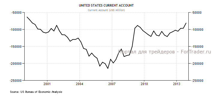 Вышедшие в среду данные по США были также неплохими. Дефицит счета текущих операций США упал до 14 -летнего минимума, поскольку объем экспорт достиг рекордного уровня. Согласно данным министерства торговли США, дефицит снизился в 4-м квартале на 16%, до $81,1 млрд с пересмотренных в сторону повышения $96,4 млрд в предыдущем квартале, превысив ожидания сокращения до $88 млрд. Дефицит счета текущих операций США в 4-м квартале составил 1,9% от ВВП (наименьшее значение с 1997 года), против 2,3% ВВП в 3-м квартале.