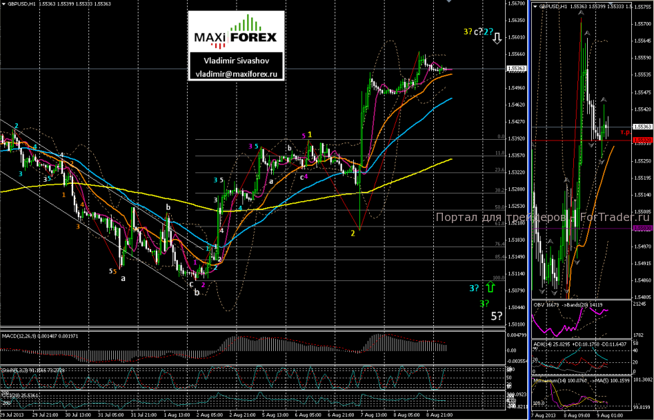 В нашем прогнозе на пятницу предполагаем завершение подъёма пары, ориентировочно, в ценовой зоне 1.34 ÷ 1.3430, а далее — разворот и снижение курса единой европейской валюты к целевым уровням: 1.3368; 1.3344; 1.3321 и, возможно, к 1.3283.