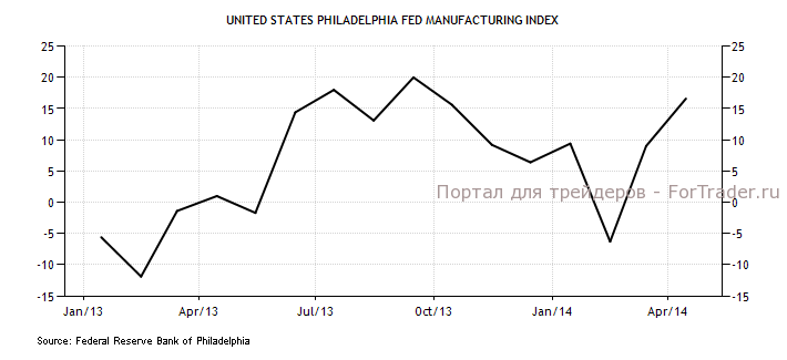 Доллар вырос к австралийскому доллару, новозеландскому доллару, йене и швейцарскому франку, но почти не изменился к евро, фунту и канадскому доллару. Доллар отыграл снижение первой половины дня после выхода позитивной статистики по США. Производственный индекс от ФРБ Филадельфии вырос в апреле до 16,6 п., по сравнению с 9 п. в марте, значительно превысив ожидания на уровне 10 п. Значительно выросли подындексы новых заказов, поставок и занятости.