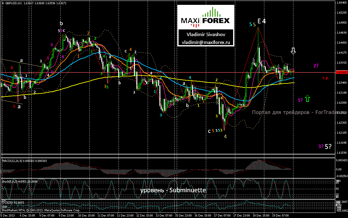 В нашем сегодняшнем прогнозе предполагаем завершение снижения пары в ценовой зоне 1.6355 ÷ 1.6320, а далее – коррекционный подъём валюты.